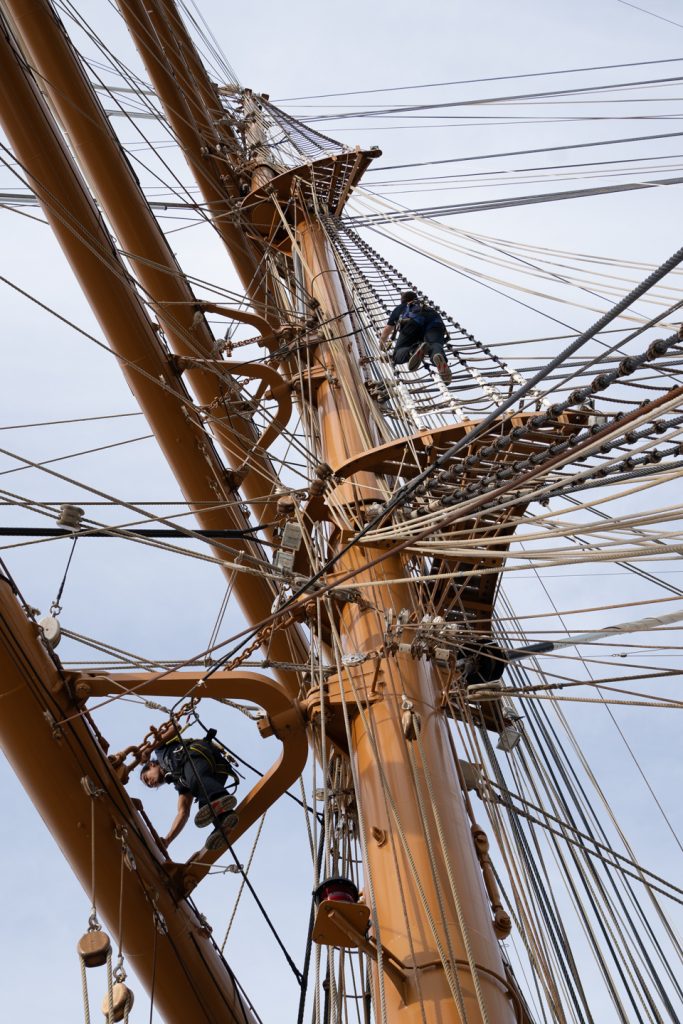 Für ganz Mutige gab es die Gelegenheit, selbst in die Masten zu klettern. Ein bisschen Überwindung braucht es schon, hochzusteigen. Mir wurde mulmig, die Hände schwitzten – doch oben angekommen, bot sich ein Panorama, das so viel Freiheit ausstrahlte, dass alles andere vergessen war.